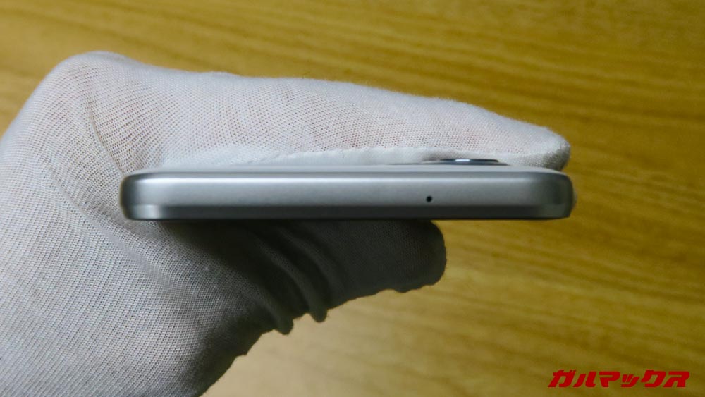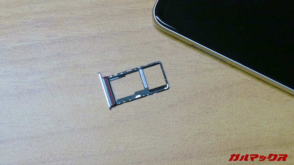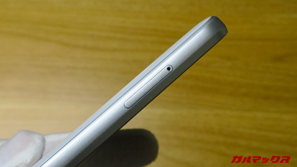 ▼左側面にSIMスロットが配置されています。SIMスロットは排他式のデュアルスロット。↓