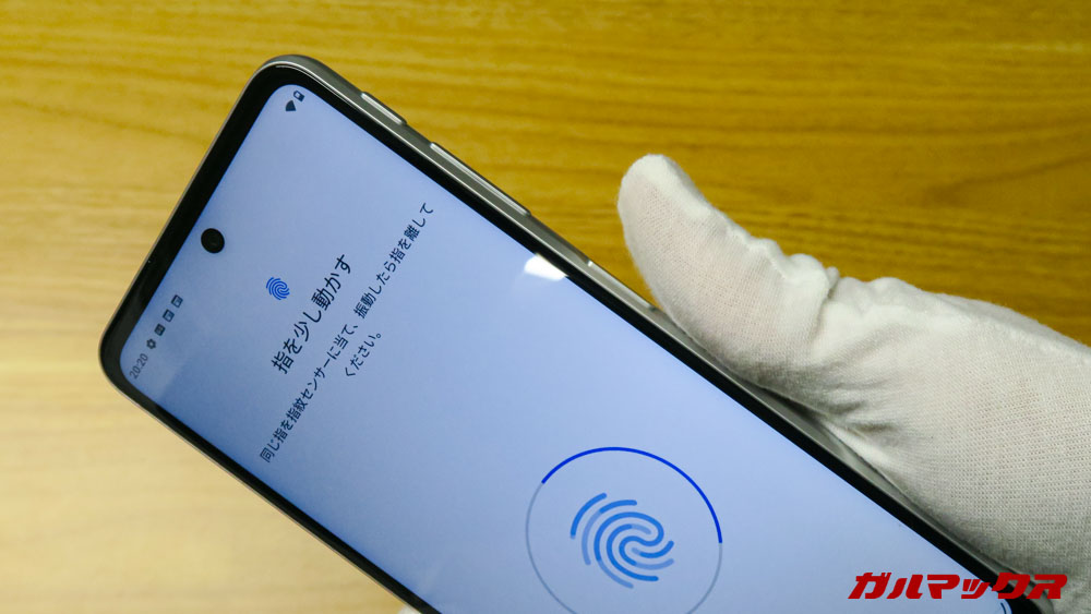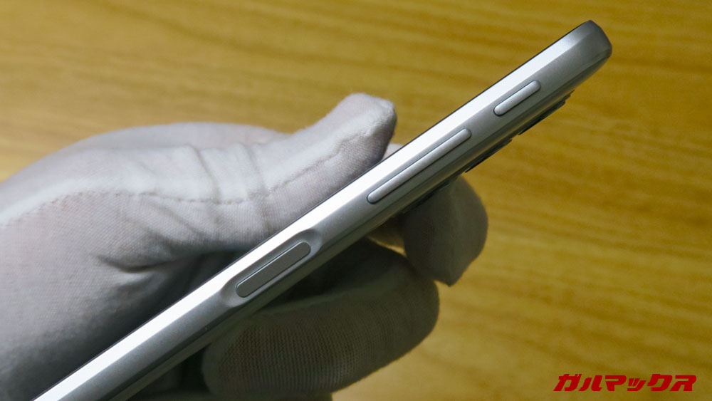 ▼指紋認証は電源キー一体型なので左手でスマホを持つ場合は扱いにくいのはネック。しかし右手であれば押しやすい位置ですし、認証速度も精度もバッチリ!少しだけ触れてもしっかり認識してくれました。↓
