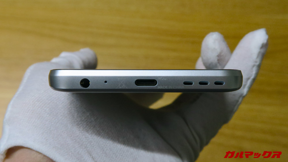 ▼下部には充電用のType-C端子、イヤホンジャック、モノラルスピーカーが搭載されています。↓