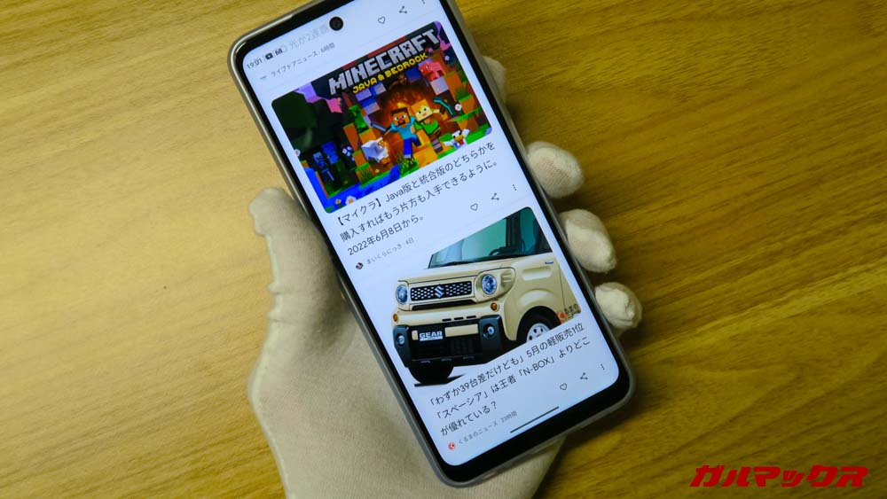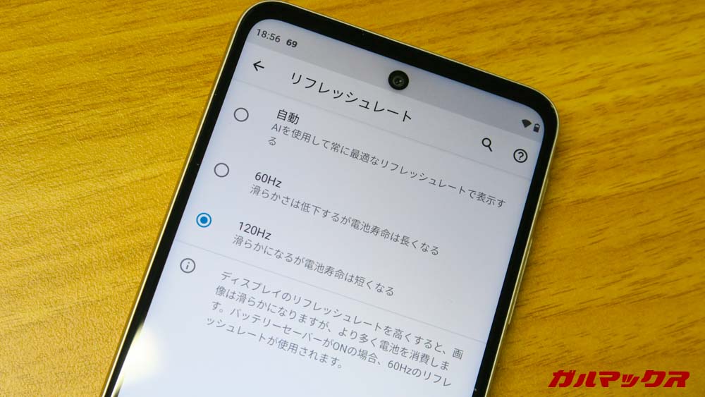 ▼ただ、ミドルレンジではあるもののリフレッシュレートもハイエンドスマホなみの120Hz表示対応。実際の操作でもめちゃなめらか!タッチの反応速度も良好でストレスなく文字入力もこなせました。↓