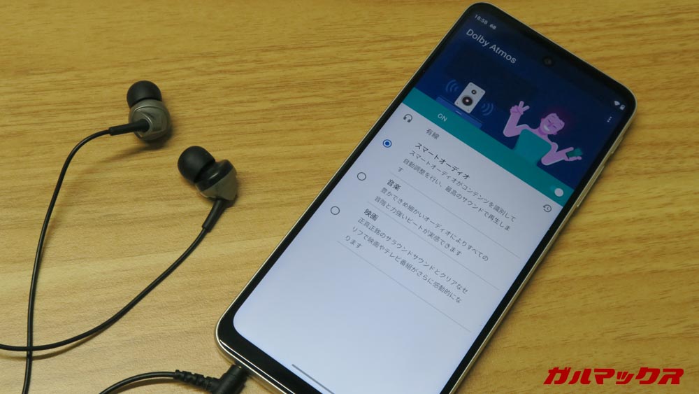 ▼スピーカーはモノラルスピーカーなのがネックですがその代わりにイヤホンジャックがあるのは良かった!Dolby Atmosのイコライザーも対応で映画も存分に楽しめました。↓