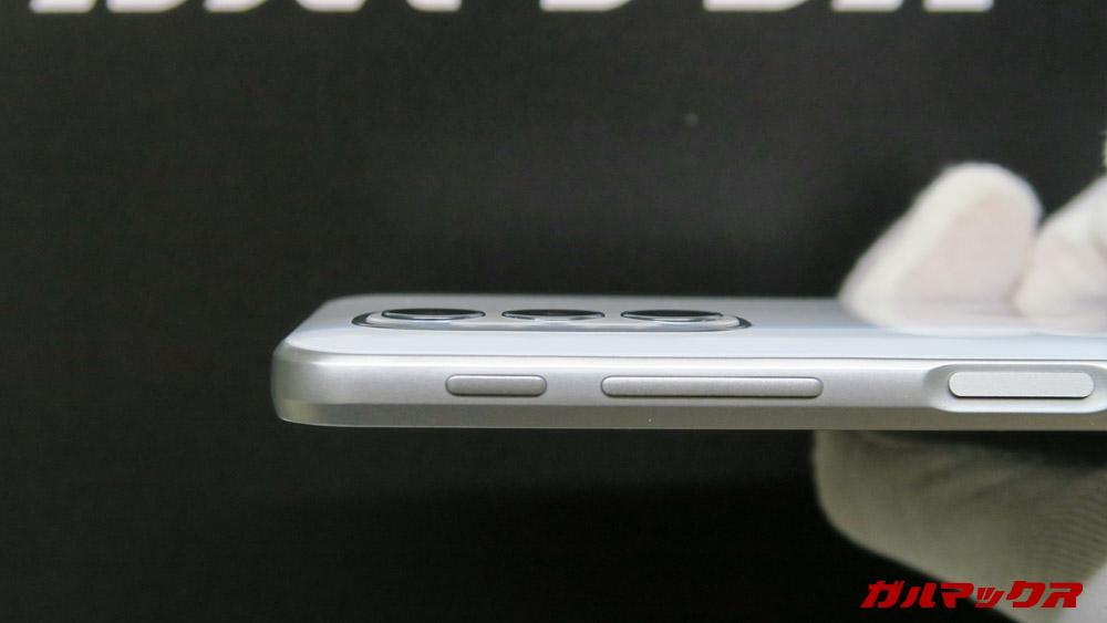 ▼右側面には左から電源キー、音量キー、Googleアシスタント専用キーが配置。↓