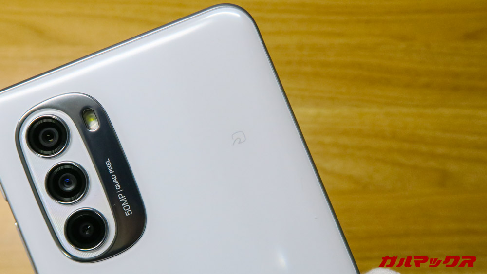▼上述にあるとおり、moto g52j 5Gはモトローラスマホで初のおサイフケータイに対応したモデル!カメラの右側に輝かしいFelicaマークもありました。↓