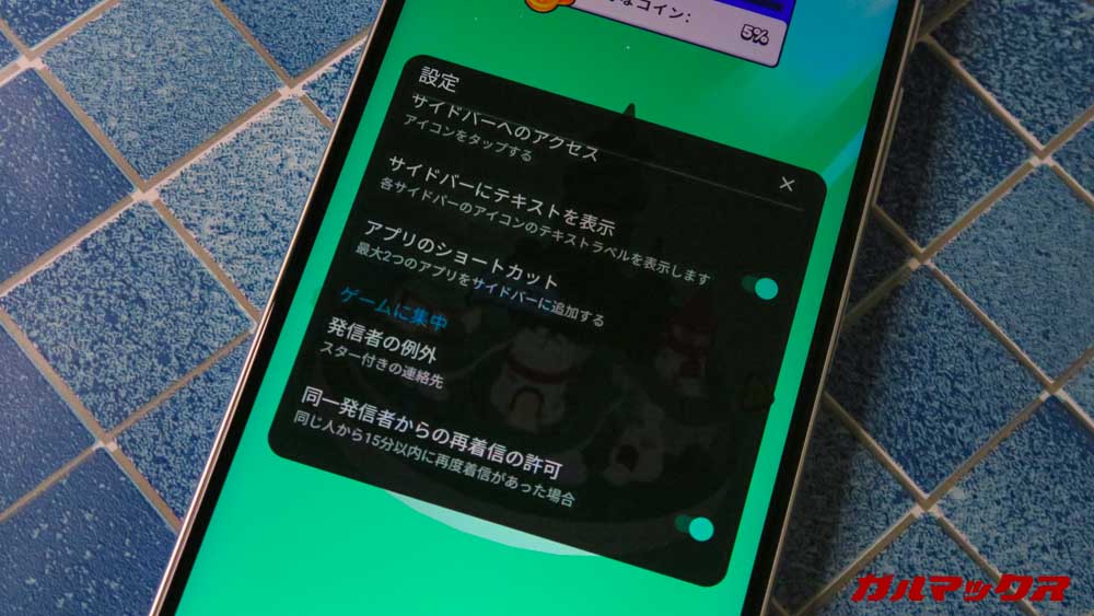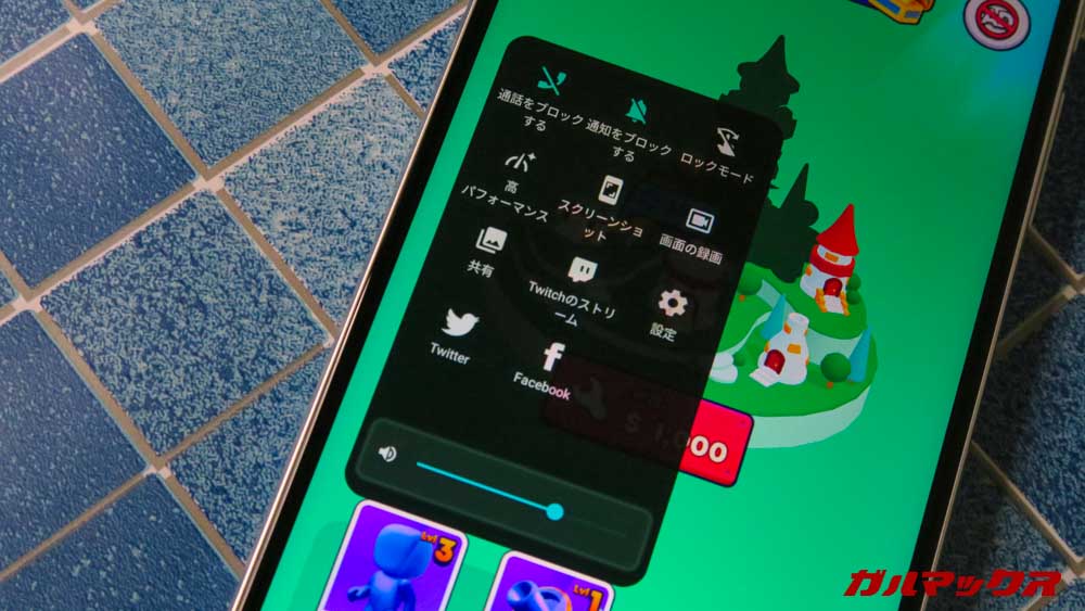 ▼moto g52j 5Gはゲームアプリ起動中に通知をブロックしたり、高パフォーマンスモードでゲームも遊べるゲームアシスタントに対応していました。フローティングボタンを押すとメニューが出てきます。↓