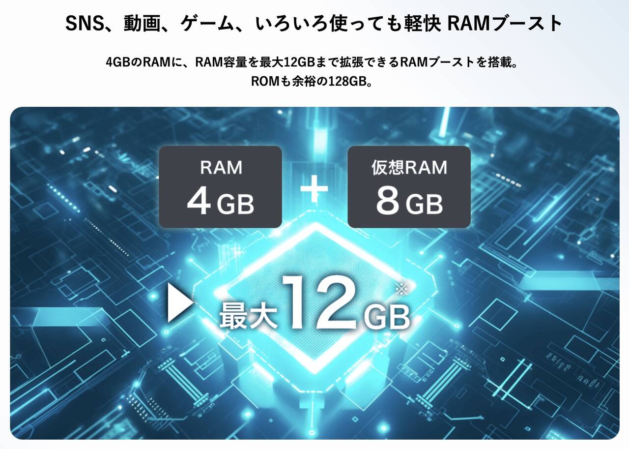 ▼それの対策なのか分かりませんが、ワイモバイルのページではストレージの一部をメモリとして使うRAMブースト機能をアピってます。↓
