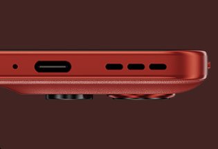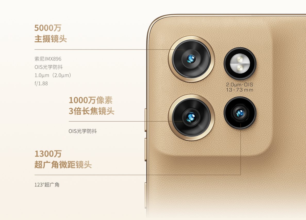 moto S50のカラバリは青っぽいグレー、ベージュ、そしてレッドの3つ!加えて本体パネルはレザー調で、カメラにつながっている設計となっているのが個性的ですね。