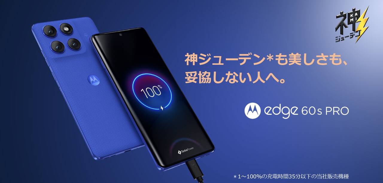 motorola edge 60 proはミドルハイに位置するスマホで、処理性能、カメラ性能、充電性能などがバランス良くまとまっています。