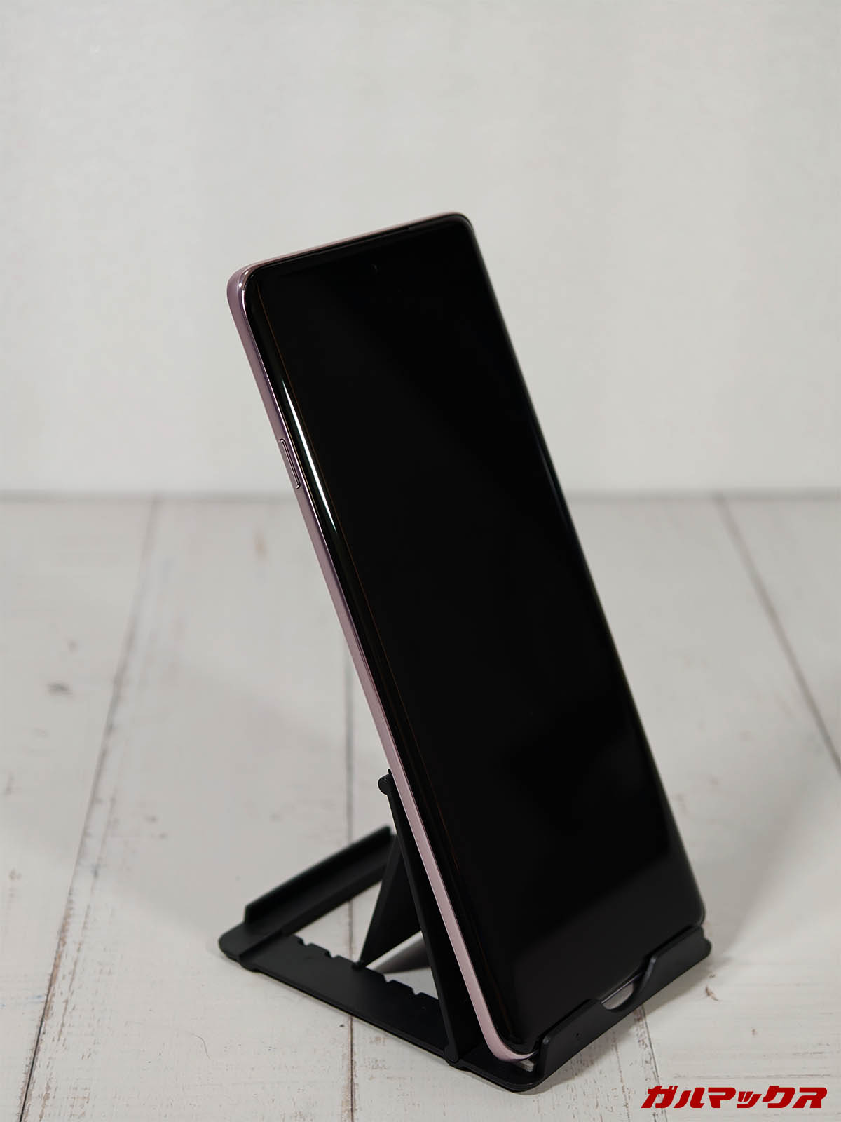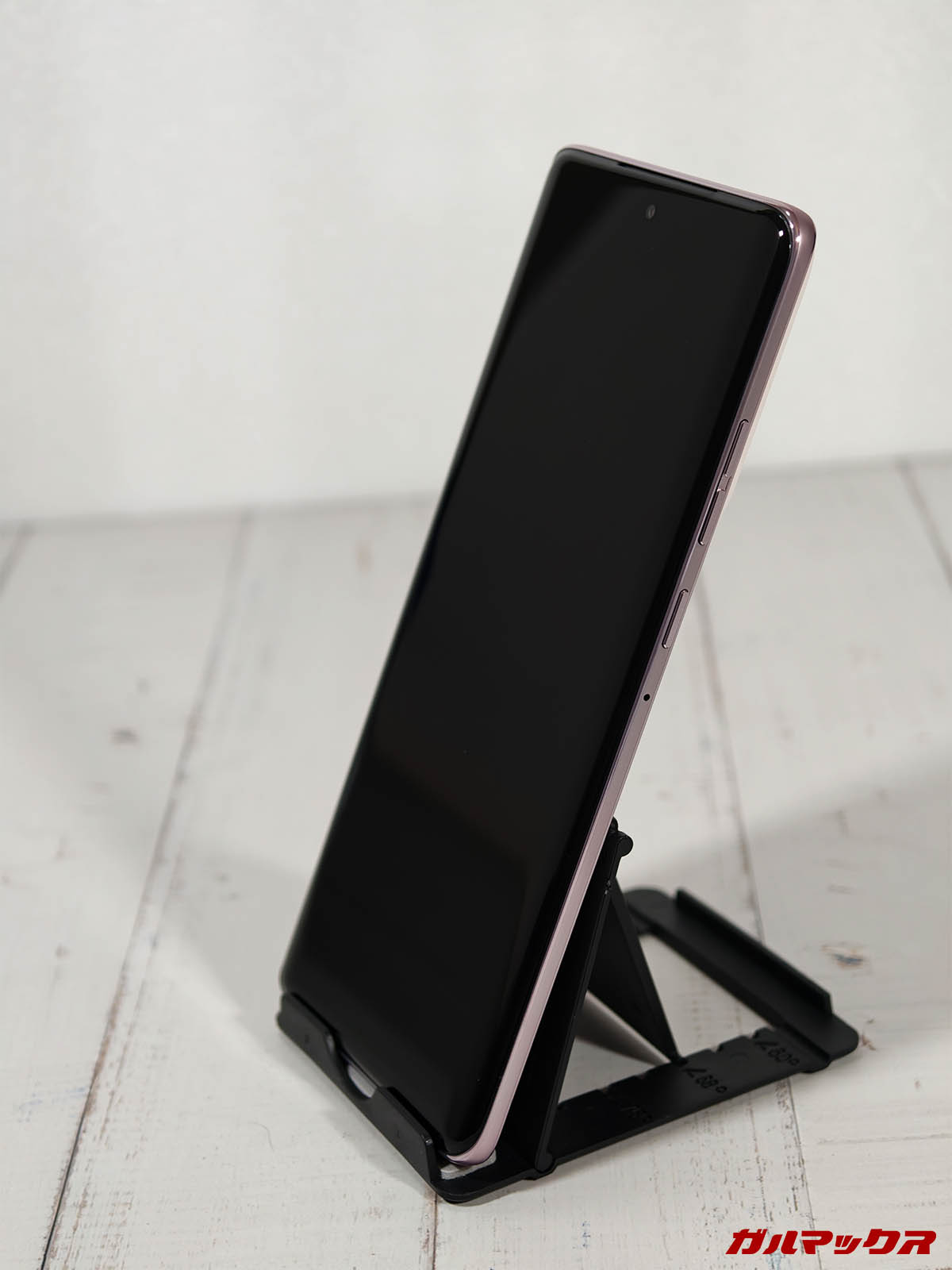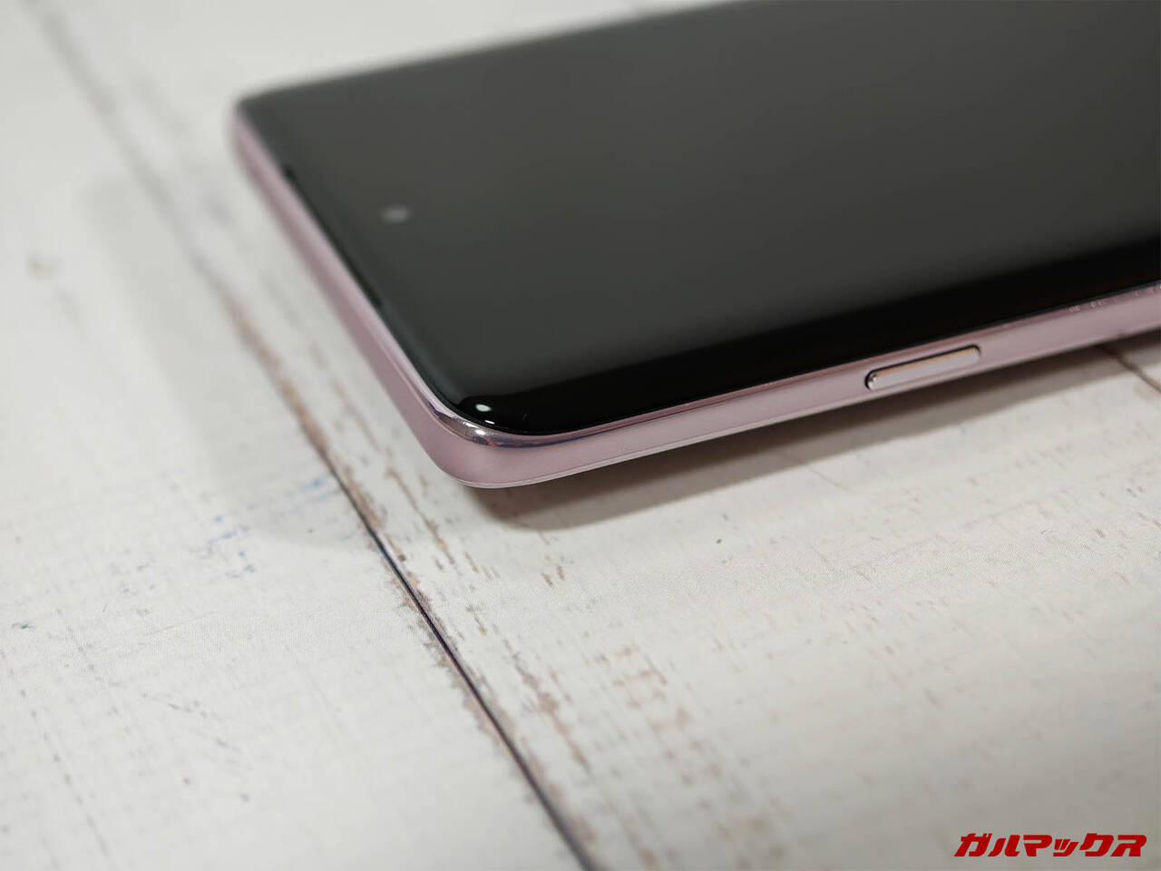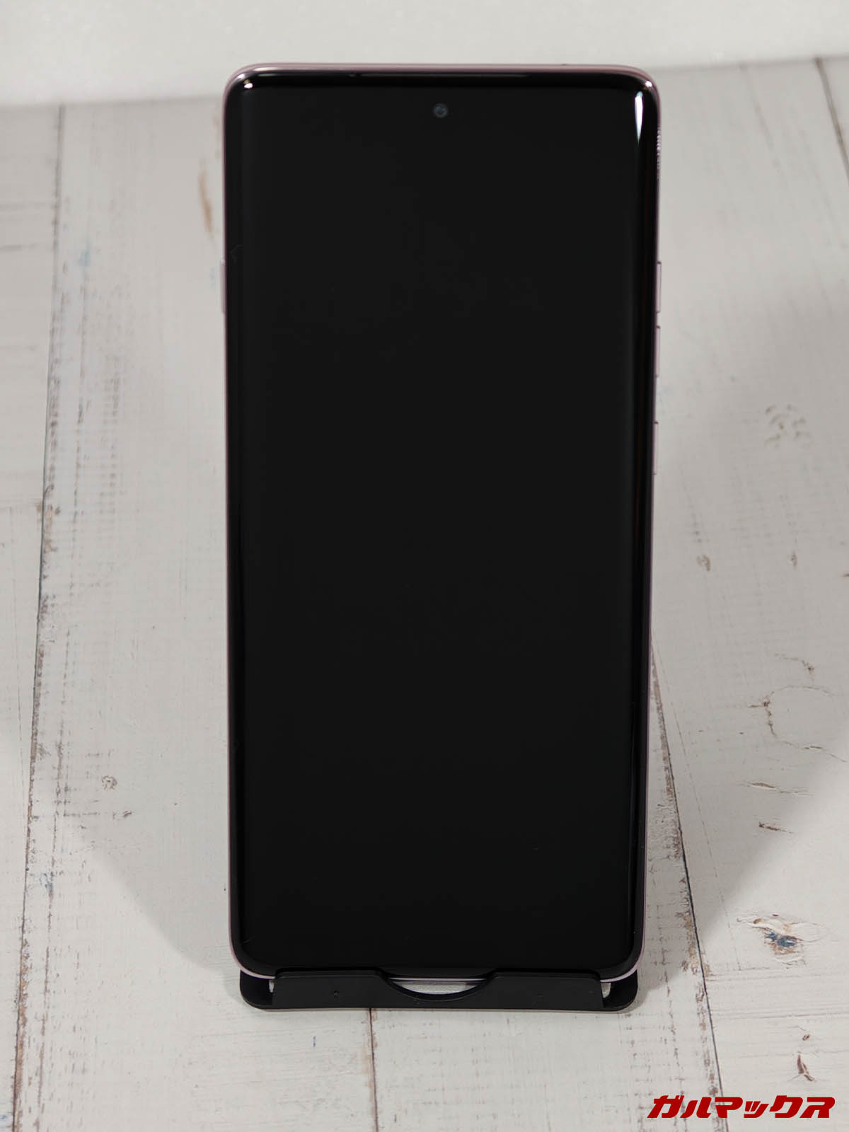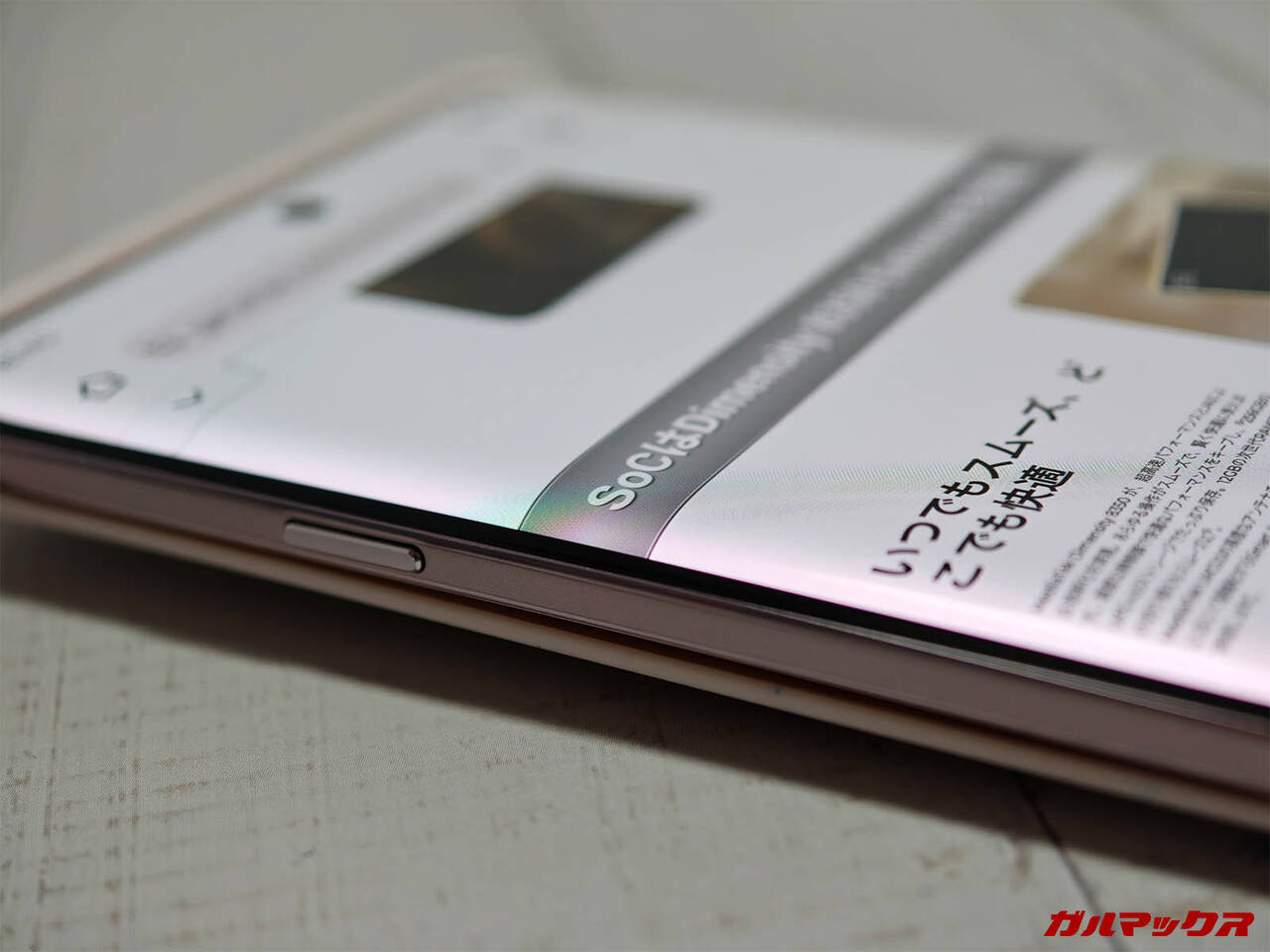 ▼ディスプレイには、edgeという製品名の通りエッジディスプレイを採用。一昔前に流行ったやつで、側面がカーブしています。↓