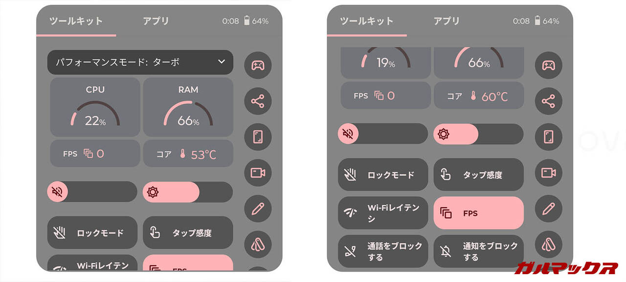 スマホの画面サイズに6アプリも表示させる必要があるかは別として、上限はゲームツールと同じ5個まで。多くない?まあ上限は多ければ多いほどいいですからね。ちなみにXiaomiは2個、OPPOは1個。