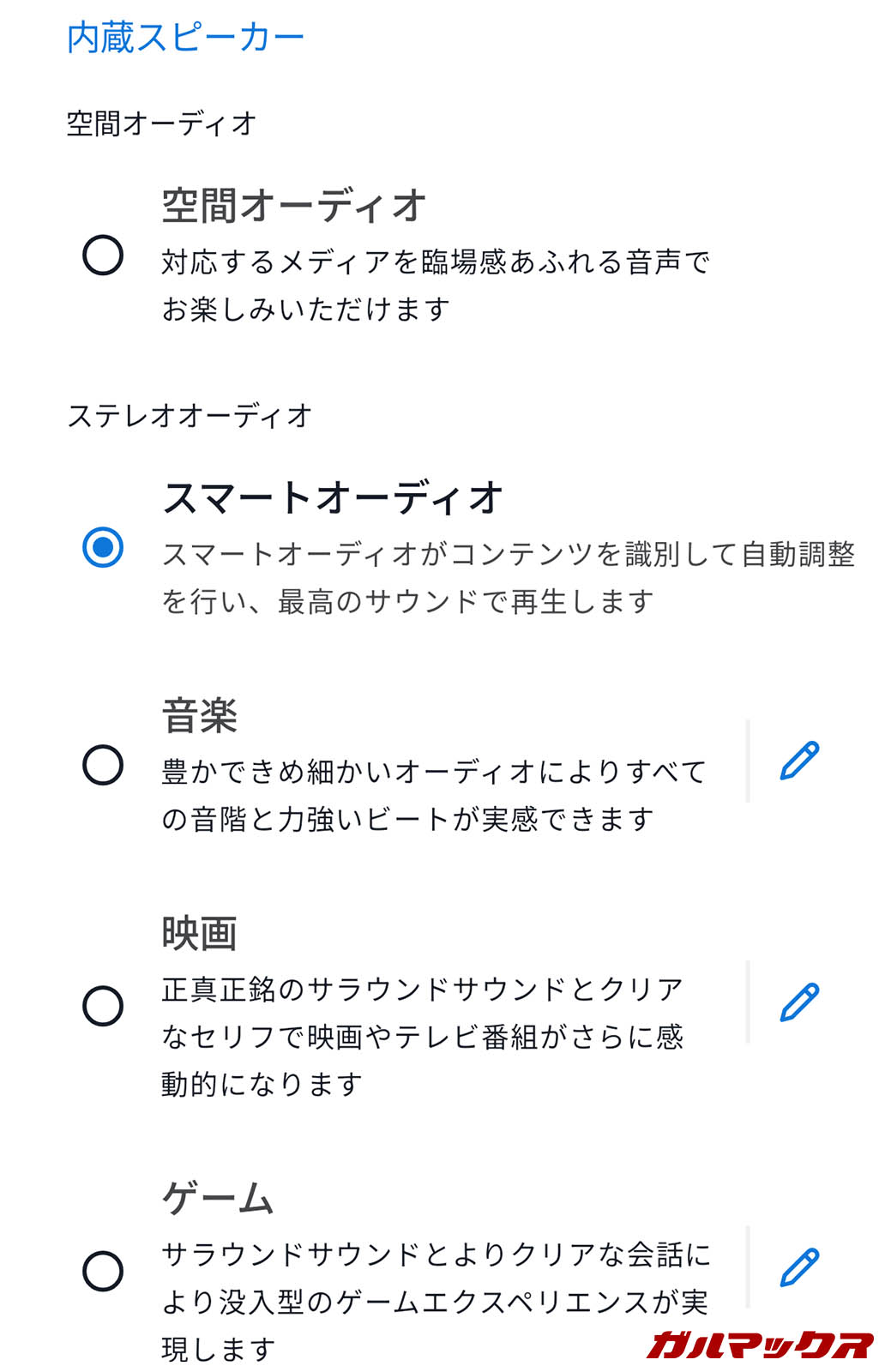 ▼Dolby Atmosに対応し、空間オーディオやおまけ程度のイコライザが利用できます。なお、イコライザと空間オーディオは同時に使用することは出来ません。↓
