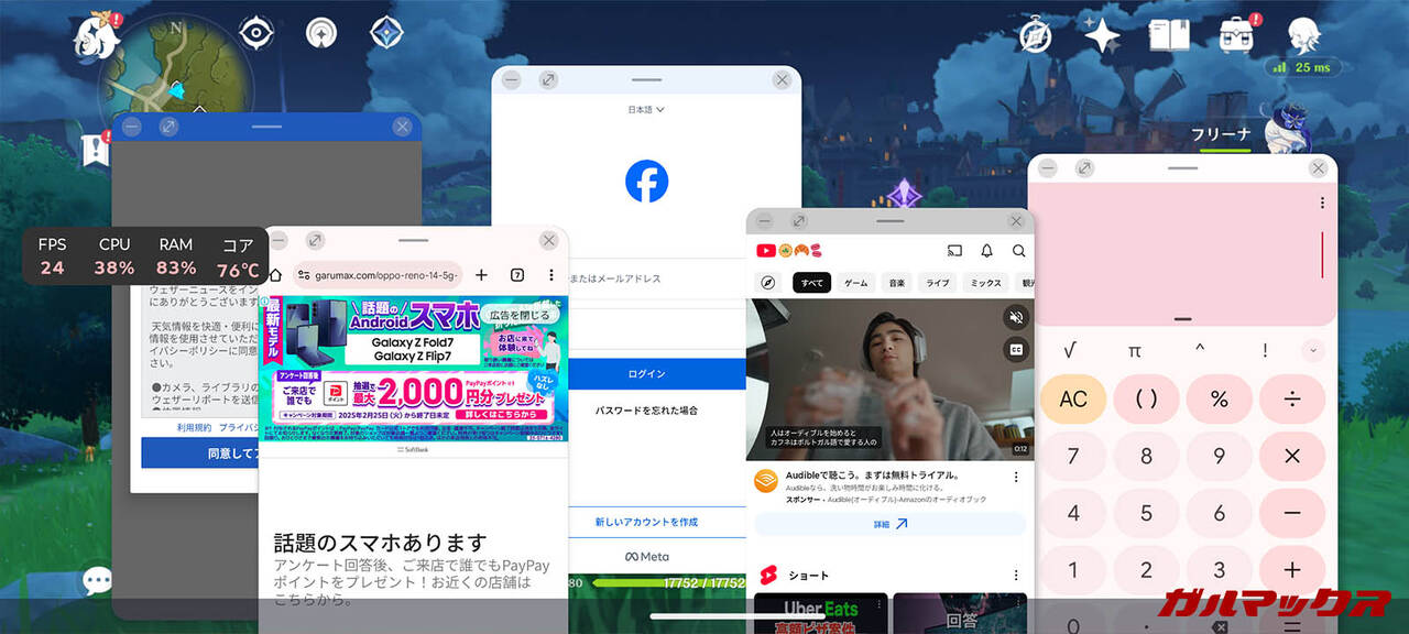 ▼他のアプリをフローティングウィンドウで起動する機能も搭載。しかも、最大5つまで同時に起動できるのは素晴らしい!他メーカーだと1つしか起動できないことが多いのでこれはありがたいですね。↓
