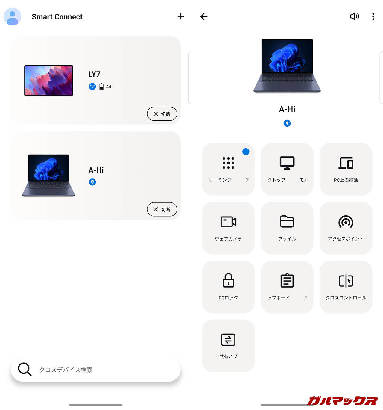 Lenovo系のスマホ/タブレットはSmart Connectというアプリを利用することでPCやタブレットなどと連携することが出来ます。スマホだけでなくPCメーカーでもあるLenovoだからこその高クオリティで、メチャクチャ便利!