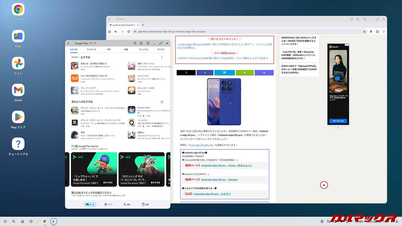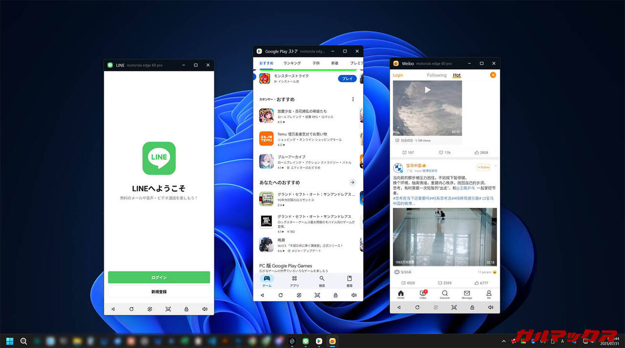 ▼「モバイルデスクトップ」ではスマホアプリをPCのような操作感で動作させることが出来ます。SamsungのDexモードみたいな感じ。↓