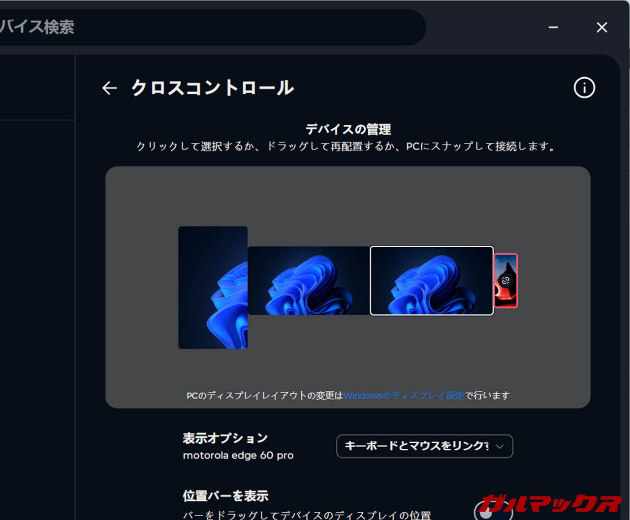 「クロスコントロール」ではPCのマウスとキーボードでスマホを操作できるようになります。