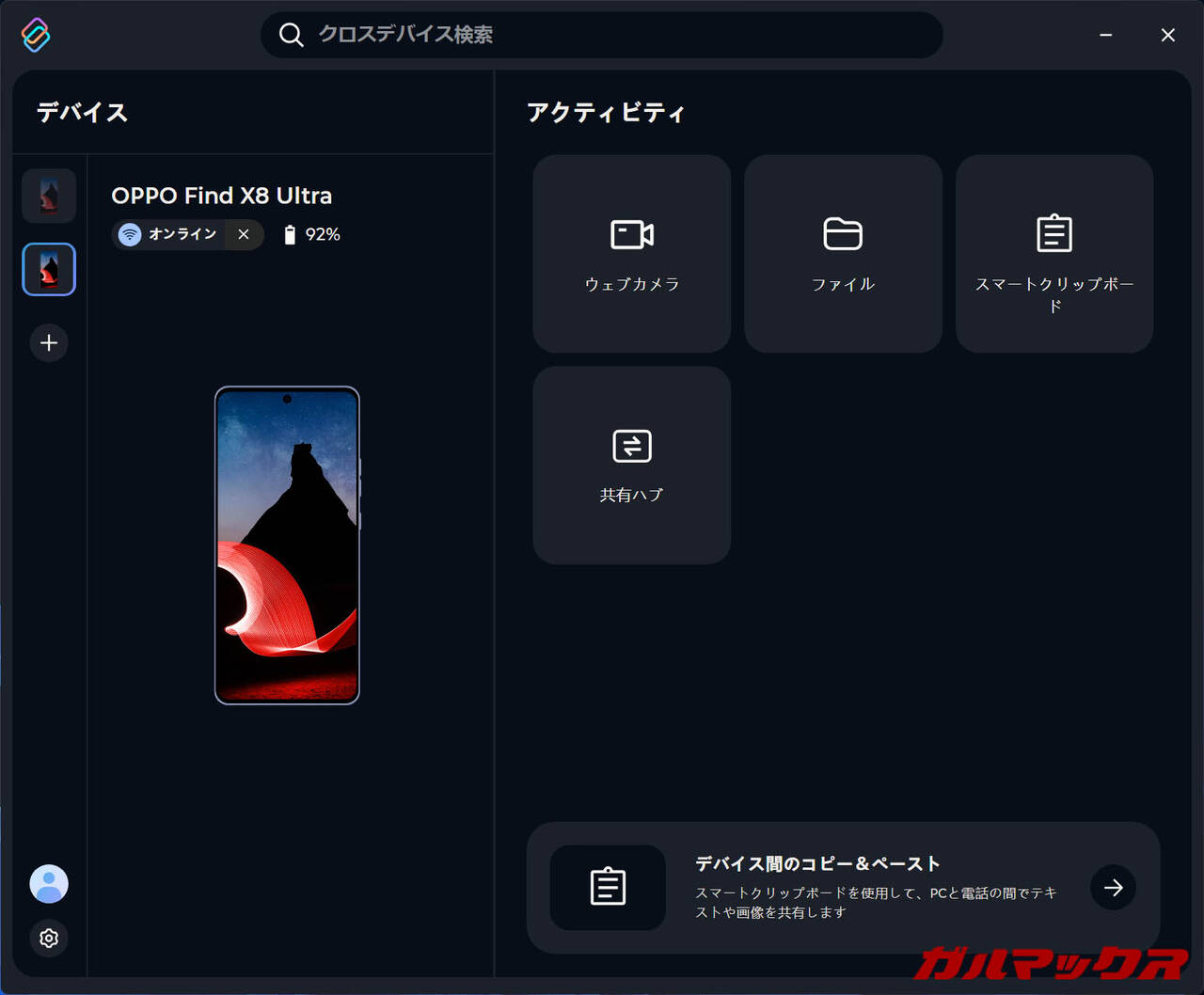 ▼「PC上の電話」はミラーリング機能。通常のミラーリングモードと仮想モードがあり、仮想モードにするとスマホとPCで別のアプリを同時に動作させることが出来ます。↓