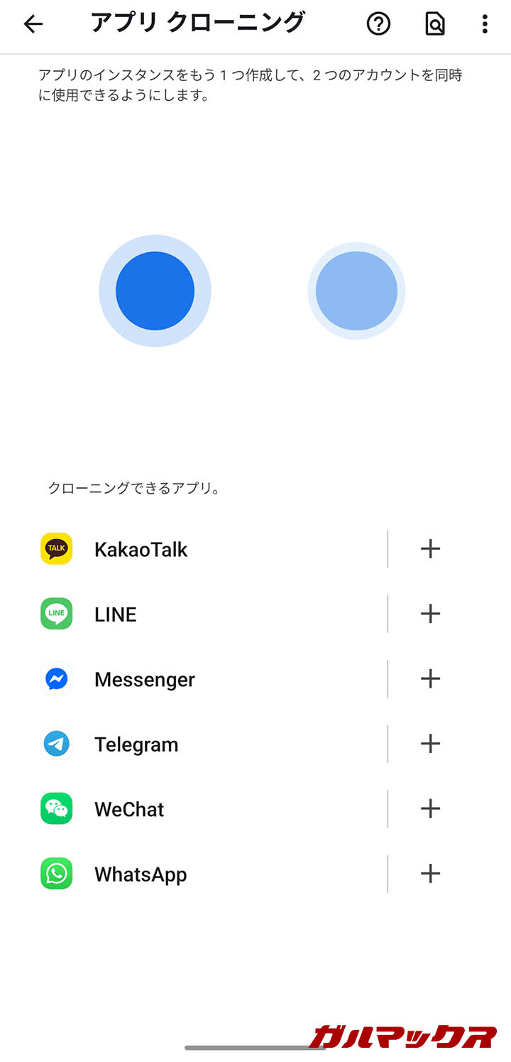 ▼アプリクローン機能も搭載しています…が、対応アプリはほぼなし。↓