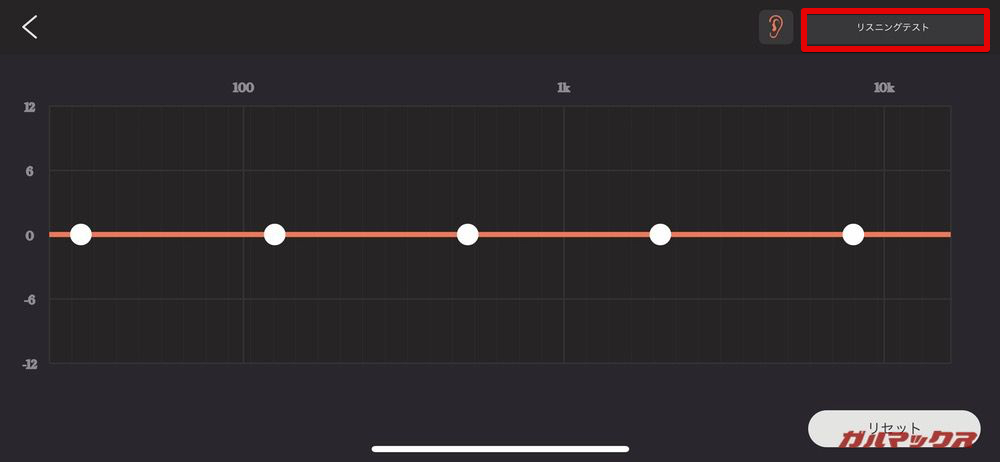 ▼アプリは全て日本語化されているのでMu6の接続を済ませたら「Equalizer」画面を開き「パーソナライズEQ」をタップ。↓