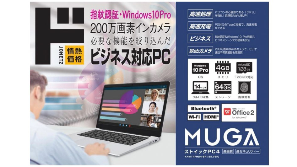 「MUGA ストイック PC4」発表!N4120、指紋認証、Windows 10 Pro搭載で32,780円