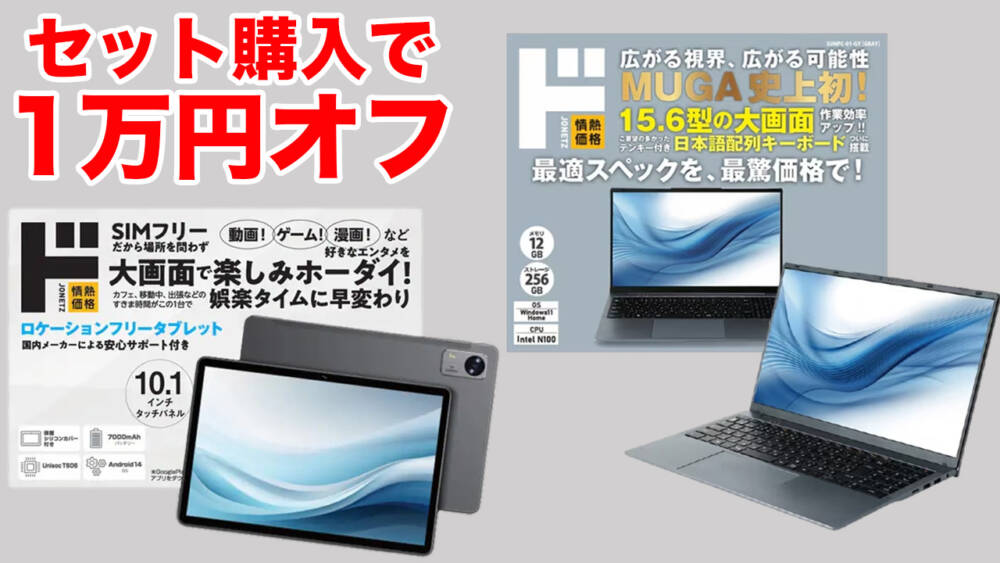 ドンキでストイックPC MUGA6とロケーションフリータブレットの同時購入で約1万円割引セール開催中!
