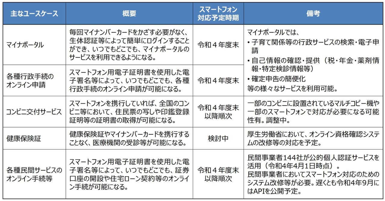 現時点では令和4年度中にAndroidスマホが先に実装されるそうです。iPhoneに関しては「早期実現を目指す」段階でとの事。