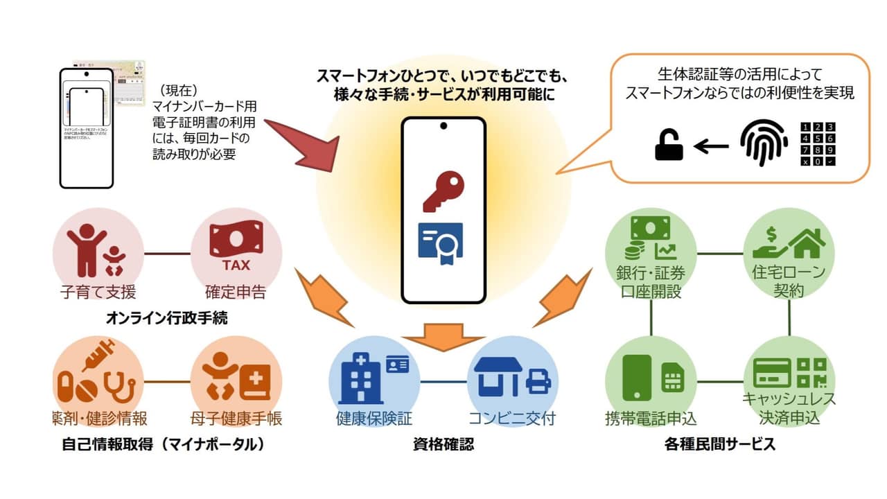 スマホにマイナンバーカード機能をもたせれば、行政手続きに民間サービスなど様々な手続きもスマホひとつで行うことができるようになり、マイナンバーカードを持ち歩く必要もなくなりますね(`・ω・´)。