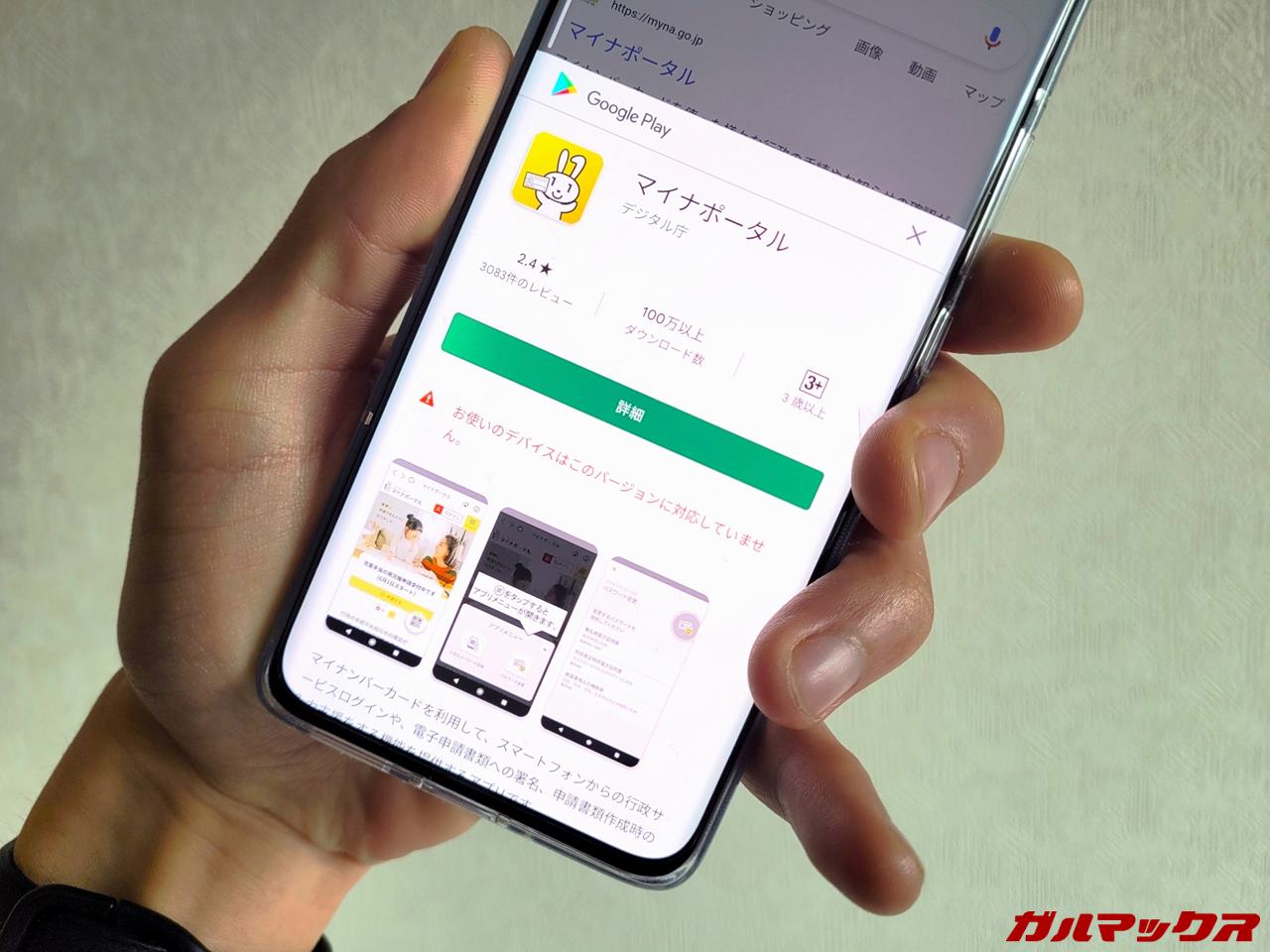 また現状、マイナポータルアプリの対応機種は限られているらしく、筆者が確認したところ、Galaxy S20 FEとXiaomi 12 グローバル版ではアプリが使えませんでした。グローバルスタンダードに対応と謳いつつ、現状はそれと反しています。