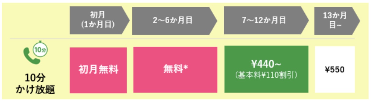 ▼2つ目は10分かけ放題が6ヶ月間最大440円割引になるキャンペーン。↓