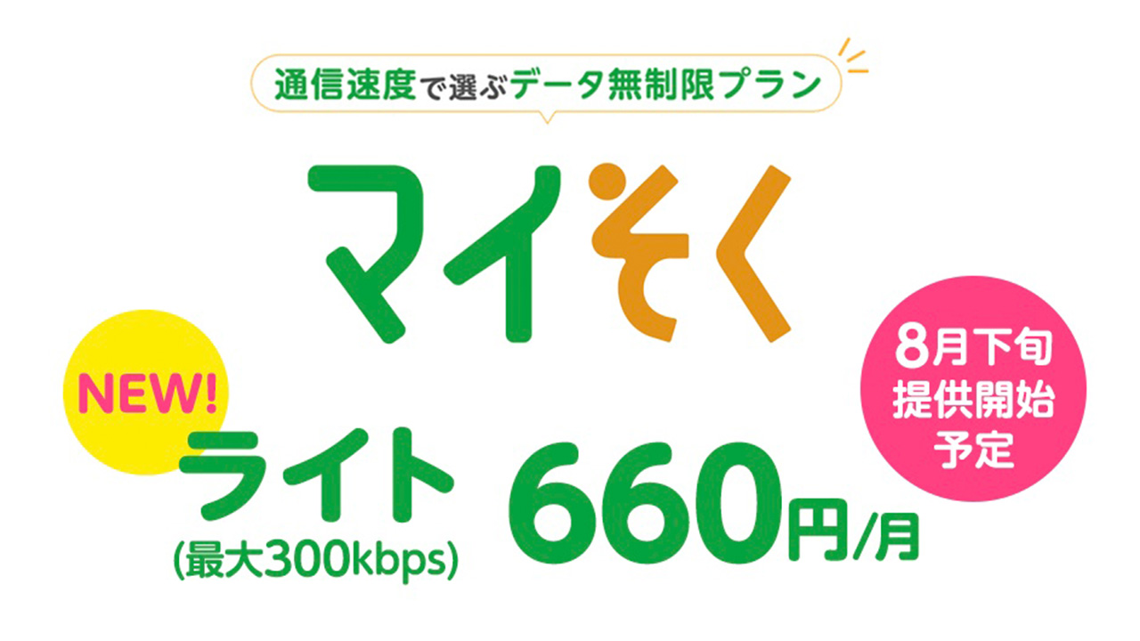 mineoの「マイそく」に月額660円のライトコース追加。お昼以外は最大300Kbpsでデータ使い放題