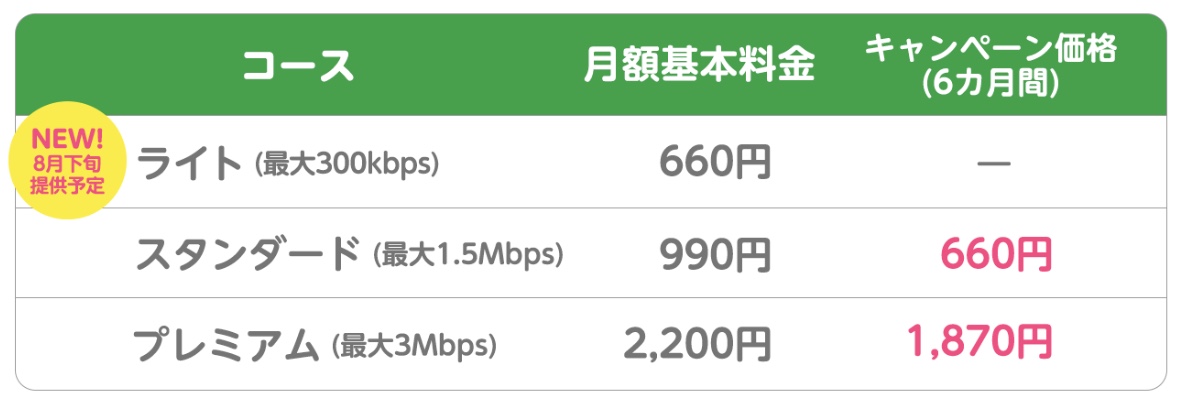「マイそく」のライトコースは月額660円
