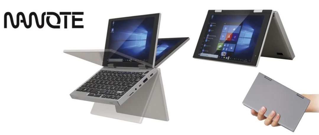 - 360度の回転ヒンジを搭載していてノートパソコンスタイルでもタブレットスタイルでも使える超コンパクトなWindows PC