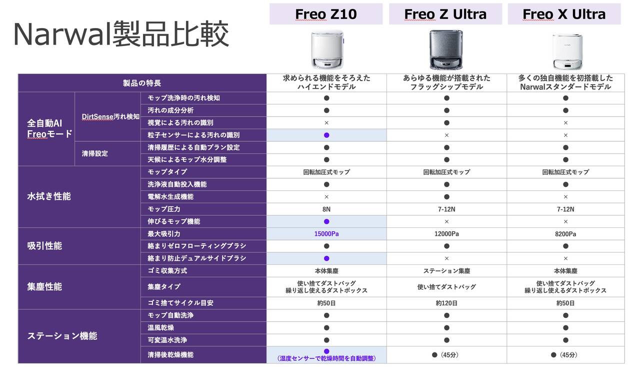 前回レビューしたのはフラッグシップのNarwal Freo Z Ultraだが、Narwal Freo Z10はフラッグシップに次ぐハイエンドという立ち位置の製品らしい。