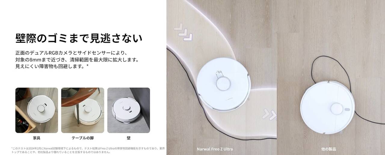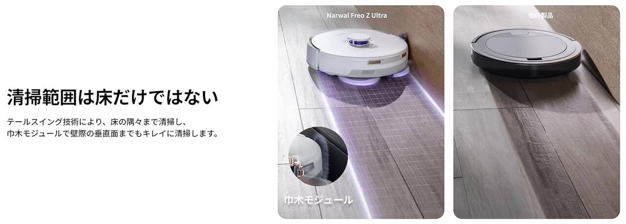 ▼Narwal Freoは吸引とモップ拭きに対応するモデル。↓