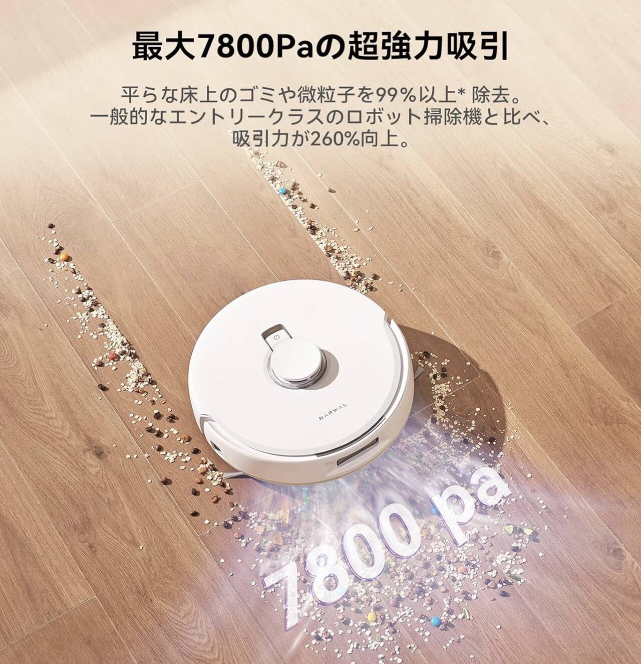▼もはやエントリーのなかでも安価な部類に片足突っ込んでるような価格ですが、吸引力は7,800Paと超強力。さすが大手Narwal製。↓