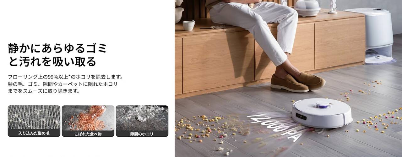 湿ったゴミと乾燥ゴミの分別、精密なマッピングが可能なLiDERナビゲーション、赤外線障害物回避など機能もてんこ盛り。