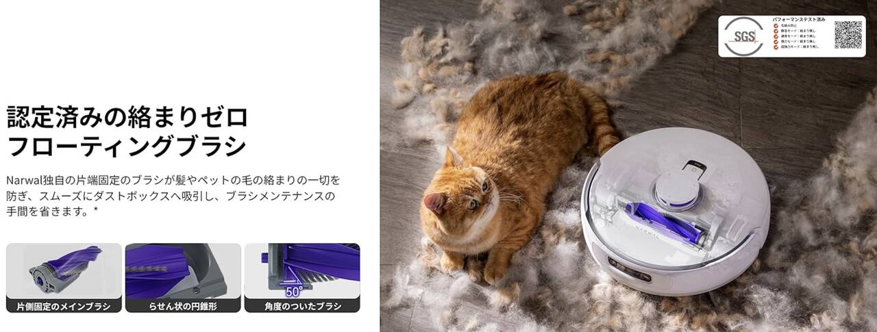 ▼Narwal自慢の絡まりずらいブラシも当然標準装備。↓