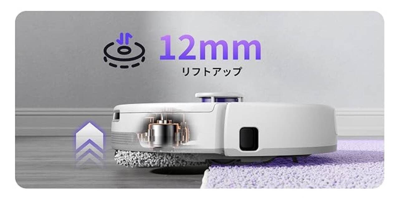 ▼モップは12mmリフトアップするのでカーペットを濡らさず掃除できるのもポイント。↓
