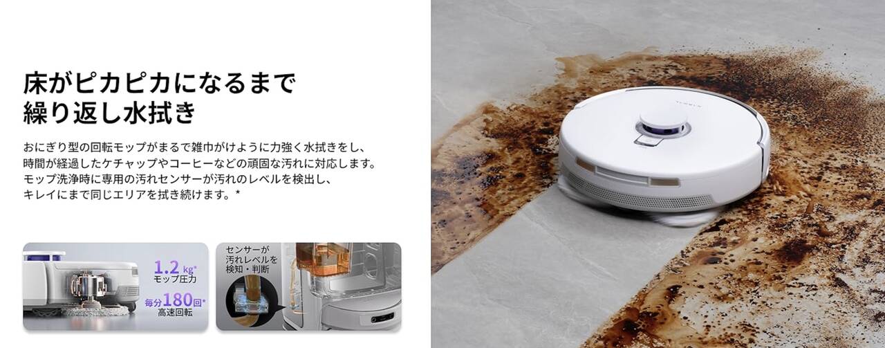 ミリ単位の精密な障害物回避、汚れを見つけたら綺麗になるまでモップ拭きなどなど、これぞハイエンド!という機能がてんこ盛り。