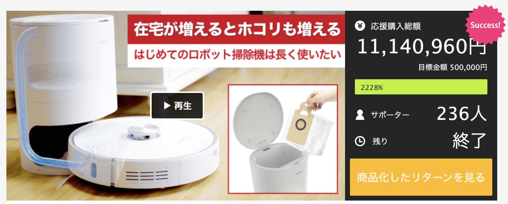 Neabot NoMoはMakuakeというクラファンで話題を呼んだ製品なんですよ。