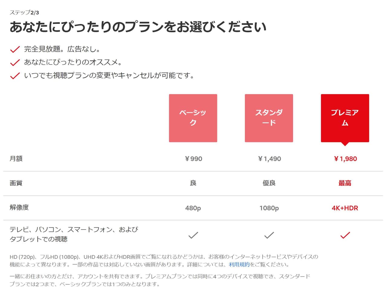 ▼なお日本での月額料金はベーシックが990円、スタンダードが1,490円、そしてプレミアムの1,980円の3つが存在します。↓