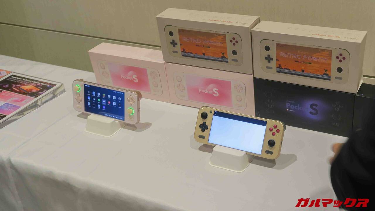 柳生です。AYANEOが新製品のゲームボーイライクなAYANEO POCKET DMGや新型の7型の形態ゲーム機AYANEO POCKET EVOを発表したので発表会場へ行ったんですが、発売済みのAYANEO POCKET Sの新カラーも展示されていました!