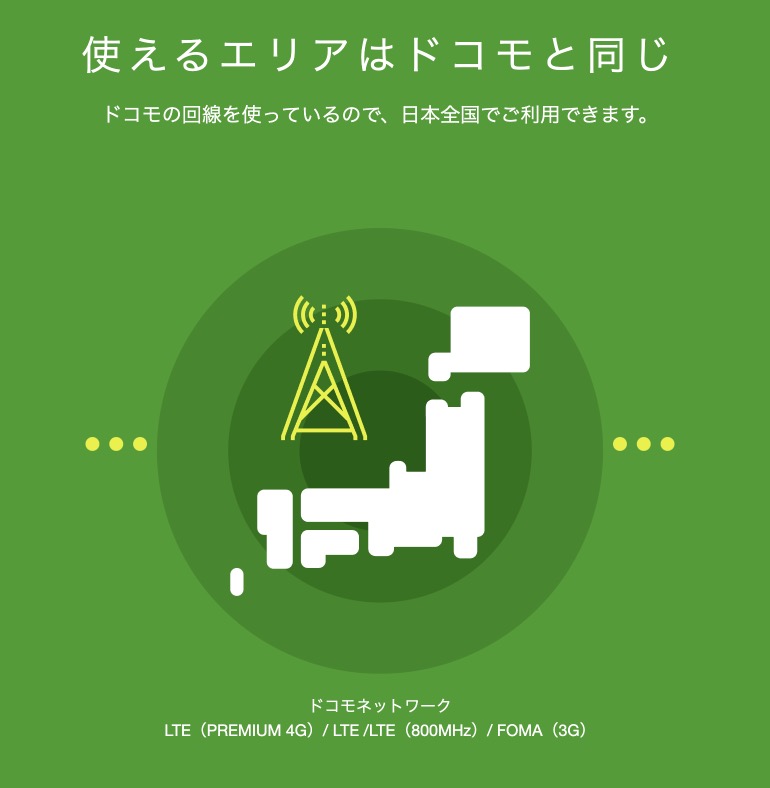 ▼合理的みんなのプランはドコモ回線を使ってるんでエリアはドコモと一緒。但し、格安SIMなので沢山の人が利用する時間帯(お昼など)は通信速度が下がる場合があるんでご留意を。↓