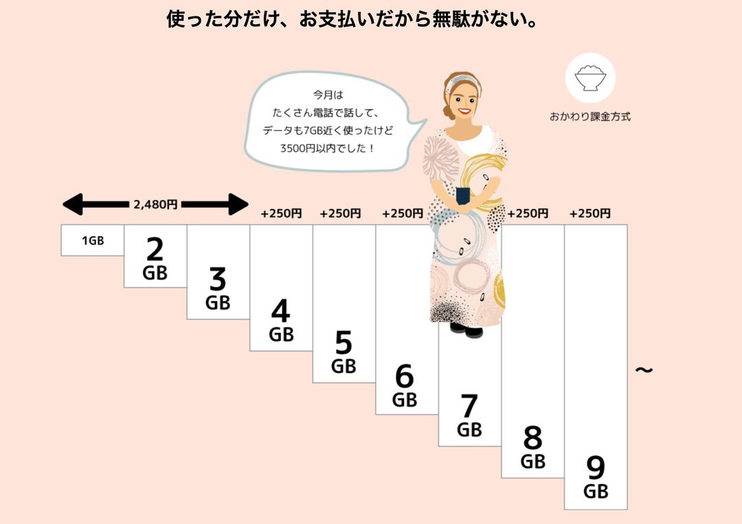 注意点としてデータ容量は使った分だけ1GB単位での請求となるのでデータ容量の繰越は出来ません。