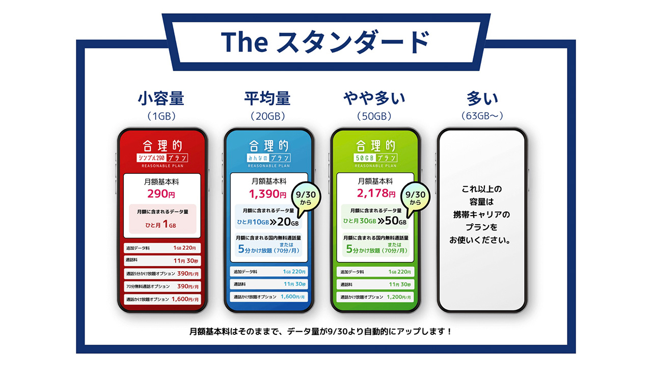 なお既に合理的30GBプランまたは合理的みんなのプランを利用している方はもちろん、今日申し込みする人もすべて9月30日から自動的にデータ容量が増量します。