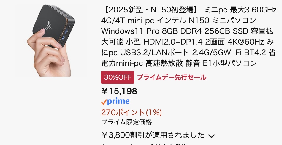 Intel N150搭載ミニPC「NiPoGi E1 N150」がセールで13,299円の超激安に