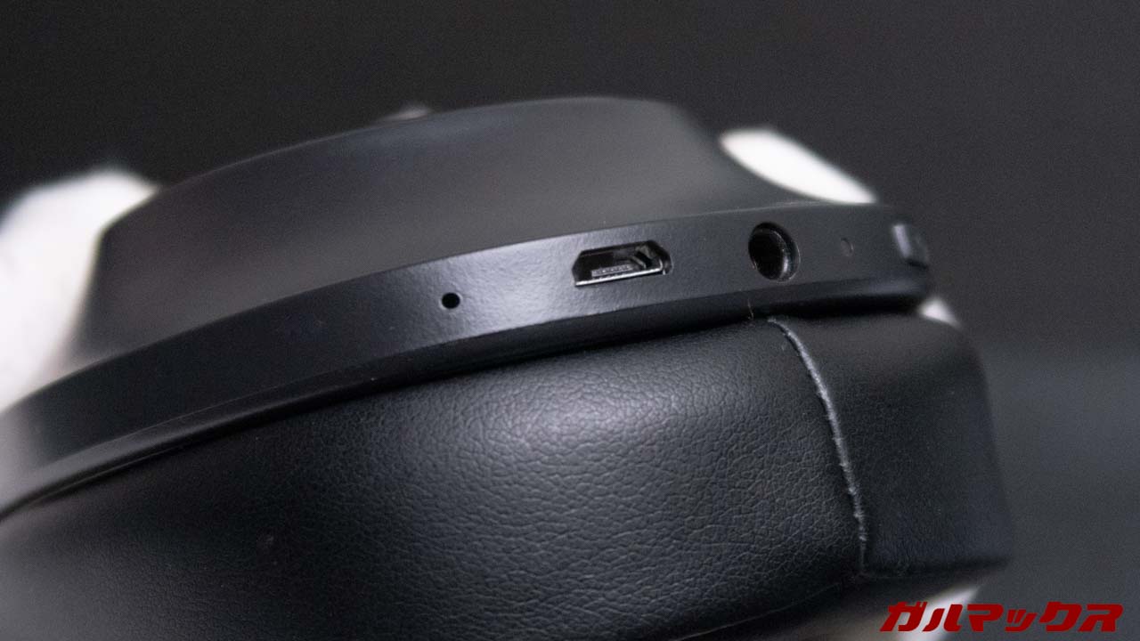▼充電端子は残念ながらMicroUSBという旧世代規格。もう今の時代ではほとんど使われてないから、持ち運ぶ時や充電ポートを1コ割かなきゃいけないってのはマイナスです。Type-Cではなかったのか…とちょっと意外でした。↓