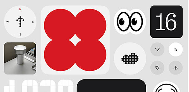 ▼UIやウィジェットは白、黒、赤などの少ない色で表現されており、時計の針やフォントがドットで表現されていたりとデザインが統一されています。↓