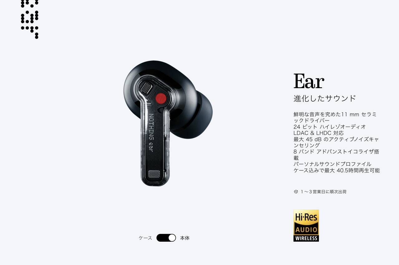 本機は没入感の高さと音質をウリとするイヤホンなので、先程紹介したNothing Ear (open)とは全くコンセプトの異なるモデルですね!音質求めるならこっち。