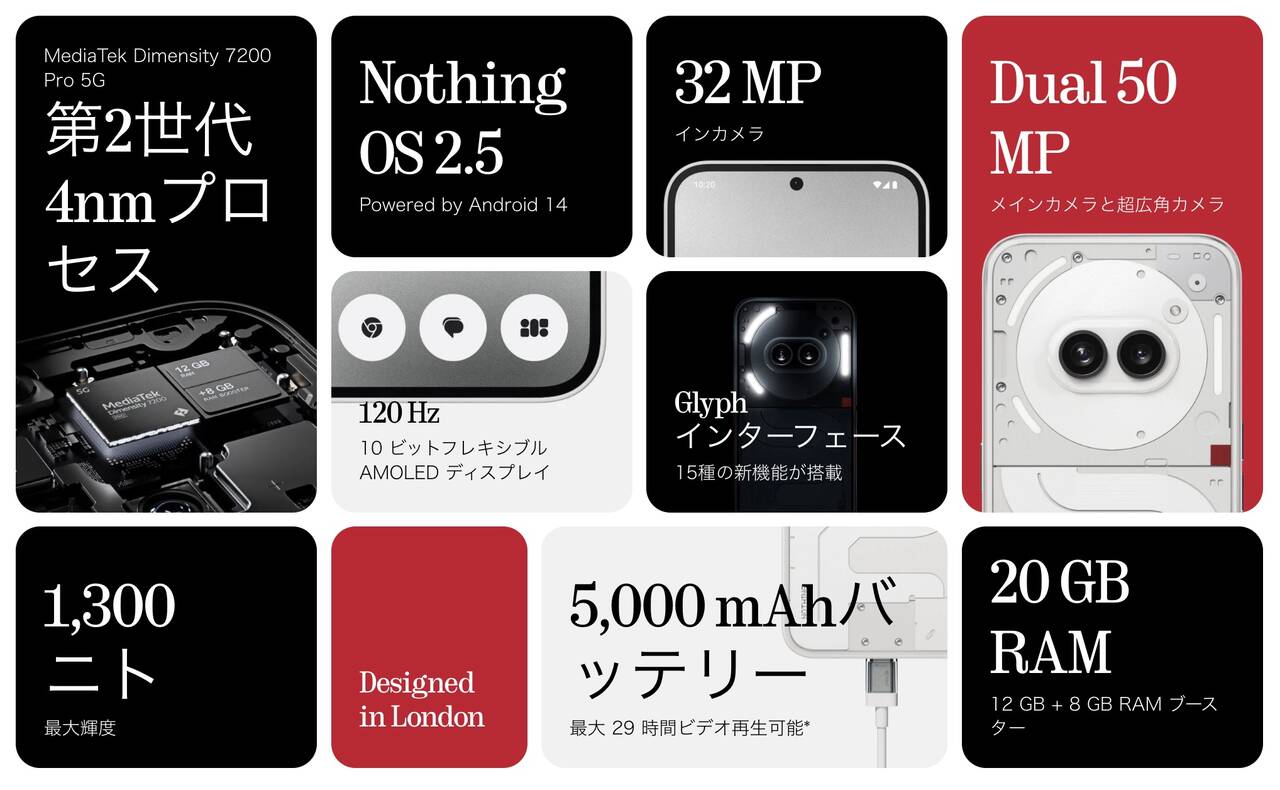 Nothing Phone (2a)の詳細スペックと対応バンド早見表
