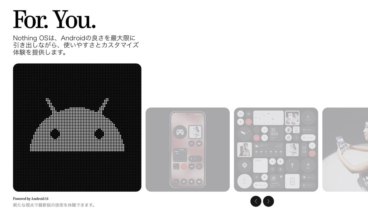 OSは最新のAndroid 14をカリッカリにカスタマイズしたNothing OS 2.5を搭載。外観が個性的なだけでなく、ソフトウェアもしっかり個性たっぷり。これは人によってはめちゃくちゃ楽しめる部分じゃないかと。