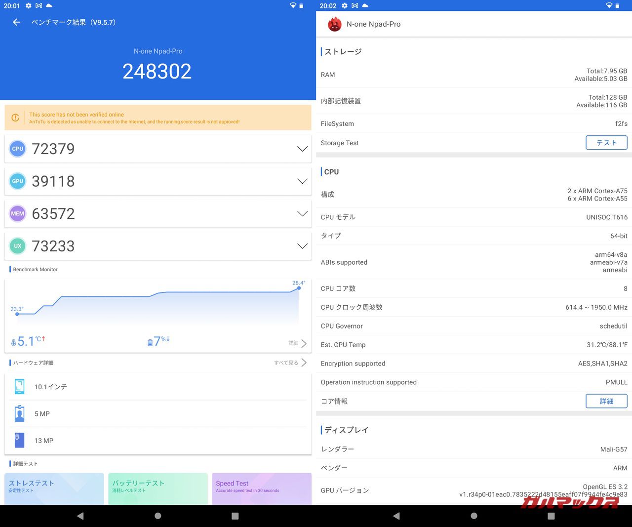NPad ProはSoCにUNISOC T616を搭載していて、レビュー機はメモリ8GB+容量128GBです!